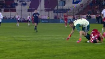 El juez acertó en su decisión. Gamba dejó enganchado el pie derecho de Armani y no lo dejó levantarse. El reglamento indica que no importa la intencionalidad, sino al resultado del contacto.