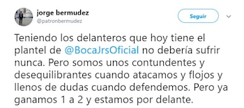 El crudo análisis del ex multicampeón con el conjunto de La Ribera prosiguió y disparó: "Teniendo los delanteros que hoy tiene el plantel de Boca no debería sufrir nunca. Pero somos unos contundentes y desequilibrantes cuando atacamos y flojos y llenos de dudas cuando defendemos".