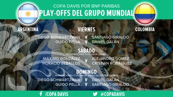 CRONOGRAMA DE LA SERIE DE COPA DAVIS ENTRE ARGENTINA Y COLOMBIA: