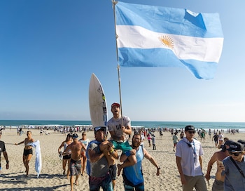 Santi prefirió no hacer diferencias entre este título y el de hace siete años. "Quizá lo único que, al ser más grande, se siente distinto, uno está más consciente de la importancia y de la dificultad para conseguirlo", admitió. En este momento de su carrera, que lo tiene peleando para meterse en el Championship Tour (CT) de la WSL (compiten los mejores 34 del mundo), semejante resultado puede servir como un espaldarazo de confianza para ir por todo, en un deporte cada día más competitivo. "Sí, es un triunfo que me da mucha confianza para lo que viene. Creo que estuve más relajado que en el circuito mundial, sin presiones, y eso me ayudó. El año pasado estuve casi seis meses afuera del agua por una lesión y ahora estoy yendo de menos a más. Ojalá sea un impacto anímico para poder crecer aún más en la WSL", analizó Muñiz, que ahora se ubica en el puesto 74 del ranking QS (12/14 ascienden al CT). Y así se fue, feliz, envuelto en la bandera y con una sonrisa dibujada. Sabiendo que es bicampeón del mundo. "Sí, lo soy pero todavía no lo puedo creer", cerró. Creelo, Santi, el mundo del surf está a tus pies.