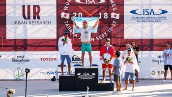 Fue en Tahara, Japón, la sede de los Juegos Olímpicos 2020 para el surf. Nada más y nada menos. Este nuevo campeonato mundial, además, le dio la clasificación para los Juegos Panamericanos de Lima 2019 y lo hace mirar con optimismo uno de los pasajes para Tokio. "Estoy muy feliz, siento una satisfacción plena, pero es difícil trasladarla, ojalá estuvieran dentro mío para sentirlo", fue lo primero que dijo el marplatense que no paraba de cantar "dale campeón" con el resto del seleccionado argentino que lo levantaba en andas y vitoreaba.