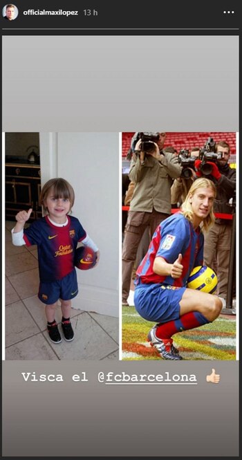 El surgido de la cantera de River subió una historia con una foto donde, en una mitad, se lo puede observar a él levantando el dedo pulgar en el día de su presentación en el conjunto catalán. En la otra parte de la imagen aparece uno de sus hijos, haciendo el mismo gesto con una de sus manos, con la indumentaria de la entidad azulgrana. Vale recordar que Maxi jugó en el club culé entre 2005 y 2006.