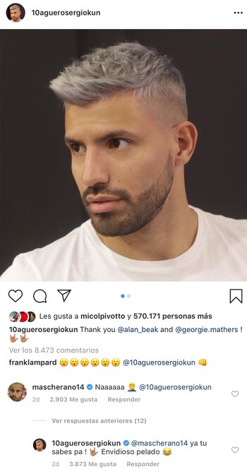 El Kun compartió en sus redes sociales imágenes de su nuevo color de pelo, un gris platinado. "Gracias Alan Beak y Georgie Mathers", había agradecido el delantero a quienes lo ayudaron con su nuevo estilo.