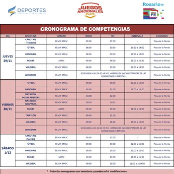Este año son ocho las disciplinas: rugby, fútbol, vóley, handball, aguas abiertas (convencional y adaptada), triatlón, canotaje y windsurf. Vale recordar que en 2017, en Concepción del Uruguay, Entre Ríos, el vencedor fue la Ciudad Autónoma de Buenos Aires.
