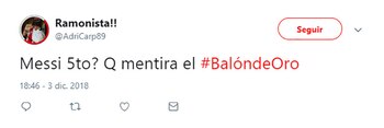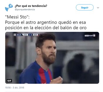 El Balón de Oro 2018, que quedó en manos del croata Luka Modric, ofreció una particularidad: luego de 12 años, Lionel Messi quedó afuera del podio del galardón, definido por el voto de 180 periodistas especializados. Más: el astro rosarino, de 31 años, quedó en la quinta ubicación.