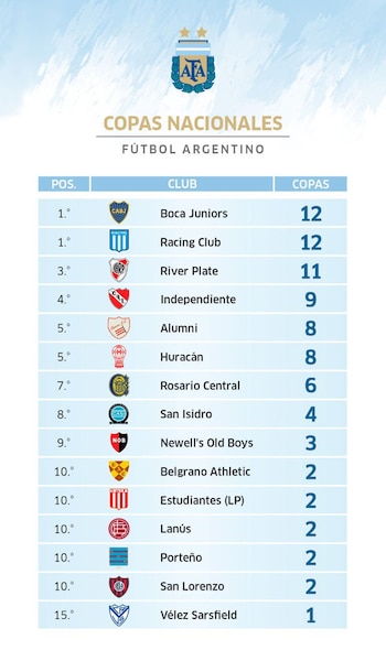 TABLA HISTÓRICA DE TÍTULOS DEL FÚTBOL ARGENTINO