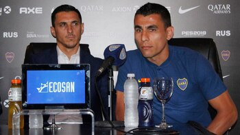 El presidente de la institución, Daniel Angelici, junto al director deportivo, Nicolás Burdisso, acompañaron a las dos caras nuevas del Xeneize en una conferencia de prensa y formalizaron la llegada de ambos al club de la ribera.