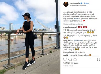 Georgina Rodríguez, la novia del futbolista portugués Cristiano Ronaldo, llegó a la Argentina para celebrar su cumpleaños. La joven compartió en las redes sociales las primeras imágenes de su paseo por Buenos Aires, la ciudad en la que nació hace 25 años.