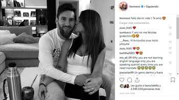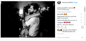 A través de sus cuentas de Instagram, la pareja se dedicó mutuamente un posteo por San Valentín. "Feliz día mi vida, te amo", fueron las palabras que eligió el delantero que volverá a la Selección de cara a la Copa América que se disputará en Brasil, mientras que su esposa le contestó: "Así, siempre. Te amo", junto a una foto en la que se los ve abrazados.
