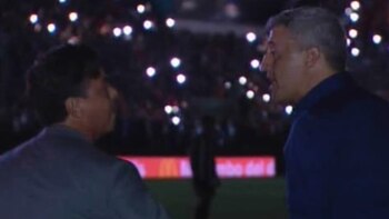 El "Muñeco" primero se cruzó con Reanto Civelli, capitán de Banfield, luego habló con vehemencia con la terna arbitral y terminó con otro cara a cara fuerte con Hernán Crespo, entrenador del conjunto local.