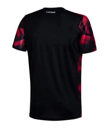 La remera cuenta con los colores rojo y negro diseminados en todo el frente, mientras que la espalda es completamente oscura para darle visibilidad a los números.
