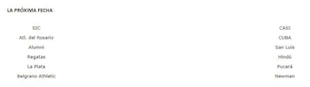 La semana que viene y por la quinta fecha, Alumni recibirá a San Luis, recordando lo que fue el triunfo en las semifinales del Top 12 del año pasado, mientras que Universitario visitará a Atlético del Rosario, con la intención de volver a conseguir una alegría, luego de las dos caídas consecutivas ante Regatas y el último ganador de la URBA.