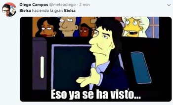 Por supuesto, el entrenador argentino Marcelo Bielsa fue el principal apuntado de la eliminación. Los clásicos memes inundaron las redes sociales. Algunos usuarios lo defendieron, pero otros tantos le recriminaron que su filosofía nunca llegara a coronarla con un título. El recuerdo del fracaso en el Mundial y las comparaciones recurrentes con Homero Simpson.