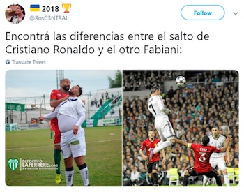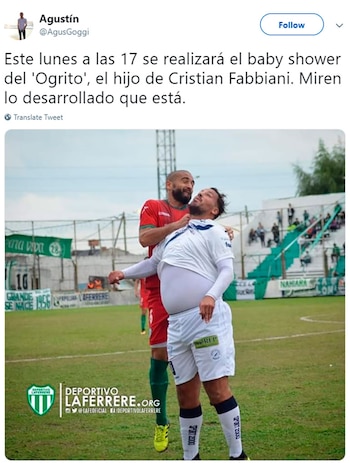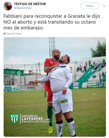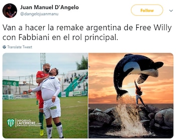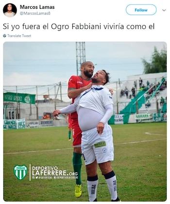 Desde sus redes sociales, el conjunto vencedor publicó una imagen poco agraciada del atacante. En la foto, mientras disputa un balón aéreo, a Fabbiani se le levanta la camiseta, lo que provoca que se advierta que no se encuentra en su mejor forma física.