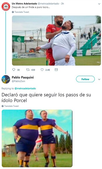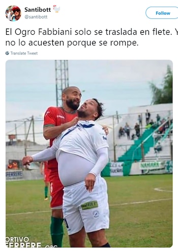 La mayoría apeló a las burlas. "¡Una medida de whisky saltó!", escribió el usuario Miguel Blanco en Twitter. "Es el que se comio a Fabbiani!!!", agregó BarbiMC. "¿Homero Simpson vive en Laferrere?", se preguntó @gitano_rosario. Incluso, algunos se animaron a la comparación con el físico trabajado de Cristiano Ronaldo.