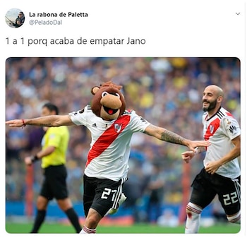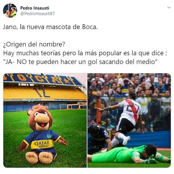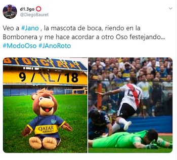 Su irrupción provocó que los hinchas de River se la tomaran con Jano: subrayaron que el hecho de que un oso fuera la supuesta mascota oficial de su adversario implicaba una especie de autoburla, dado que una de las figuras del "Millonario" -y autor de dos goles en la Superfinal 2018- es Lucas Pratto, apodado "Oso".