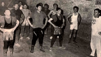 -¿Quién me va a pegar a mí?, ¿no ve que todos son unos bagres al lado mío? No hubo caso, intentó hacerme jurar por ella que nunca más pelearía. -Eso no se lo puedo prometer, déjeme ver qué pasa, si veo que no sirvo, largo, se lo juro; pero déjeme probar… Yo siempre recuerdo aquel diálogo con mi madre. Y también los silbidos de la primera pelea. Estas dos cosas siempre fortalecieron mi amor propio. Había hecho del boxeo una obsesión. No como aficionado, sino como protagonista. Curiosamente iba poco a ver festivales de boxeo. Sólo para alentar a algún compañero o para conseguir futuras peleas. Desde aquella época fui muy exigente como espectador. A mí me habían hablado de un tal Amílcar Brusa. Todos decían que era un grandote fenómeno, muy buen profesor de boxeo y tipo derecho. Se lo podía ver en el gimnasio del club Unión o en el Banco Español, en la casa central, en el centro. Sabía que si lo iba a ver me iba a poner un montón de condiciones antes de aceptarme. Tendría que dejar el cigarrillo, acostarme temprano, tener el pelo corto, abrirme de algunos muchachos de la barra que él "junaba" muy bien, dejar todas las "jodas de las minas", entrenarme todos los días y hacerle caso en todo. Como estaba dispuesto, fui a verlo. Lo único que realmente me molestaba es que Brusa estuviera en Unión. Nada menos que yo, un fanático de Colón, a veces integrante de su famosa hinchada –la que hacía líos en las canchas- y con los colores metidos en el alma, iba a tener que resignarme y defender los colores de la contra, Unión. Pero no había más remedio. Y así llegué una tarde hasta el gimnasio de los "tatengues". No teníamos baño, ni duchas cercanas. Y para bañarnos después de los entrenamientos debíamos recorrer más de cincuenta metros al aire libre, en las instalaciones ubicadas en la otra punta de la tribuna. Cuando llovía, mejor dicho cuando caían dos gotas, el gimnasio se inundaba y ese día no había entrenamiento. A pesar de todo esto, aprendí a querer ese gimnasio desde el primer día, me gustaba. Tanto que aún después de ser campeón mundial continué entrenándome allí hasta que Brusa habilitó su moderno gimnasio.