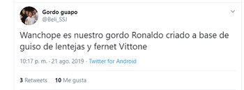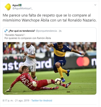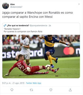 Su actuación tuvo enorme eco en las redes sociales: se transformó en primera tendencia en Twitter y brotaron las comparaciones con… Ronaldo Nazario. Sí, muchos hinchas del Xeneize, maravillados con el nivel de Wanchope, emparentaron su presentación con las mejores jornadas del ex atacante brasileño que brillara en el Barcelona y el Real Madrid. Claro que también proliferaron las bromas y los memes, para condimentar el debate.