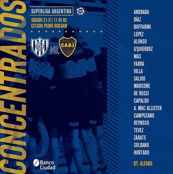 Para esta ocasión Alfaro les dará la chance de jugar desde cero a Julio Buffarini y Emmanuel Mas, dos que se enfrentarán a su antiguo club. Mañana definirá si incluye a Sebastián Villa en el once titular o apuesta por Carlos Tevez. En caso de que el Apache gane la pulseada, entonces Alexis Mac Allister se moverá al sector derecho del mediocampo y Carlitos actuará detrás de la posición de Franco Soldano, referencia de ataque.