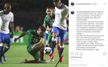 Ante el rendimiento que tuvo el equipo de Eduardo Villegas, en el que cosechó tres derrotas ante Brasil, Venezuela y Perú, fue el mediocampista Fernando Saucedo el que no pudo contener sus emociones encontradas y las volcó en las redes sociales.