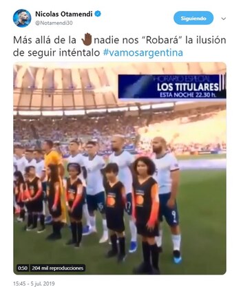 Uno de los hombres más experimentados del plantel también hizo mención a la publicación en las redes sociales que realizó durante los últimos días a raíz de lo ocurrido contra Brasil: "Seguimos luchando contra todo. No importa contra quién. Tenemos que mentalizarnos en nosotros, en tratar de seguir peleándola".