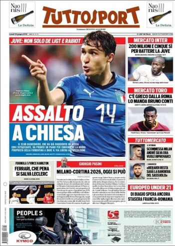 Tapa del diario Tutto Sport, Italia, 24 de junio de 2019