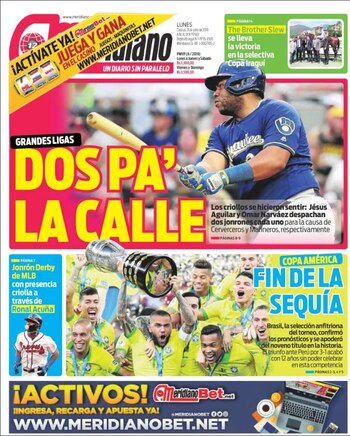 Tapa del diario El Meridiano, Venezuela, 8 de julio de 2019
