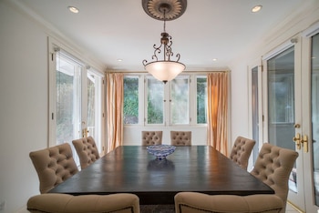El lugar ocupa 570 metros cuadrados. Posee seis camas y siete baños además de una extensa zona de jardines. Curiosamente no tiene una cancha de tenis pero sí una piscina y un gimnasio.