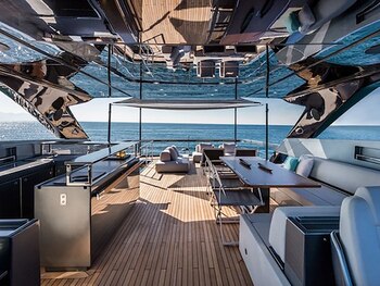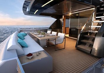 A su vez tiene "cuatro suites más debajo de la cubierta. Una generosa terraza para tomar sol totalmente personalizable y ventanas grandes y atractivas a lo largo del casco", detalló el sitio web.