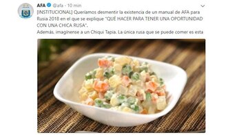 Resulta inverosímil, pero sucedió. En las últimas horas, la Asociación del Fútbol Argentino dictó un curso de educación para periodistas, dirigentes y futbolistas que estuvieran interesados en viajar a Rusia para el Mundial. Y dentro del cuaderno titulado "Idioma y cultura rusa" hubo un llamativo capítulo en el que se explicaba cómo seducir mujeres.