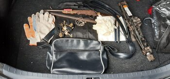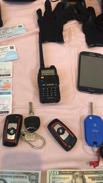 También incautaron 40 banderas con los colores de Chacharita, 30 bombos, un inhibidor de cerraduras de auto y siete vehículos, algunos de ellos de alta gama (BMW 118, VW Vento, Toyota Corolla, Peugeot 208, , VW Virtus, VW Voyage y Chevrolet Corsa).