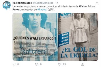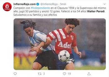 El fútbol está de luto. La noticia que dio a conocer Quilmes en su cuenta oficial de Twitter ocasionó un dolor profundo en los más memoriosos. Walter Parodi, el ex delantero de Racing e Independiente, murió a los 54 años a causa de una enfermedad terminal.