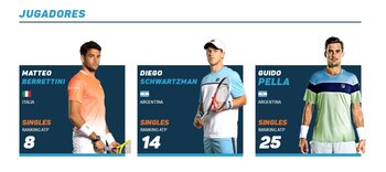 De esta manera, el único tenista que se encuentra dentro del Top 10 del escalafón internacional es el italiano Matteo Berrettini, quien se ubica octavo. Diego Schwartzman (14), Guido Pella (25), el serbio Dusan Lajovic (27), el croata Borna Coric (28), el español Albert Ramos Viñolas (42), el uruguayo Pablo Cuevas (44) y el ibérico Fernando Verdasco (50) son otros protagonistas que animarán la competición en la calurosa Ciudad Autónoma de Buenos Aires.