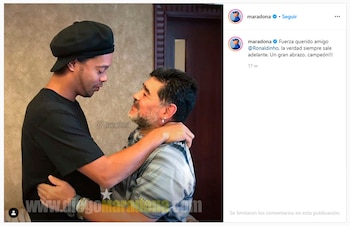 En ese contexto, Diego Armando Maradona, amigo personal del Dinho se expresó en las redes sociales para manifestar su apoyo hacia el brasileño. “Fuerza querido amigo Ronaldinho, la verdad siempre sale adelante. Un gran abrazo, campeón”, escribió el técnico de Gimnasia en su cuenta oficial de Instagram.