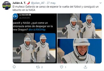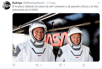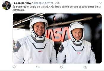 Pero Gallardo fue Behnken para los fanáticos del fútbol argentino. Y afloraron cientos de bromas. Los hinchas de River aprovecharon para burlarse, una vez más, de Boca, apelando al recuerdo de la Superfinal de la Libertadores de 2018 y a los triunfos en los mano a mano de la era del Muñeco, próxima a cumplir seis años. Y hubo también alguna daga rememorando el paso del club de Núñez por la B Nacional. “La NASA ya tiene todo listo para el Ascenso”, escribió la cuenta @unmetroadelantado.