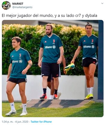 Pues bien, una imagen difundida de la práctica de hoy de la Juventus generó una catarata de memes en las redes sociales. En la misma, se ve a Higuaín entre Dybala y Ronaldo; y parece ostentar algunos kilos de más, algo que se hizo una constante en varias plantillas. Ocurrió, por citar un caso, con Luis Suárez en Barcelona.