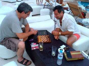 También los directores de teatro y cine, Juan José Campanella y Juan Carlos De Sanzo son aficionados al noble juego; lo descubrieron en sus años de infancia aunque luego lo olvidaron. De Sanzo lo recuperó hace un tiempo. “En 2005 nos vinimos a vivir a Cariló cansado de los asaltos en Escobar. Acá encontré la tranquilidad y el romance con el ajedrez ¿Quién me enseñó a jugarlo? En 1945, cuando la Argentina declaró su participación en la Segunda Guerra Mundial, cosa que muchos no saben, en el país había simulacros de oscurecimientos y un vecino, Raimundo García, me enseñó los rudimentos del juego a la luz de una vela en el zaguán de mi casa. Él siguió con el ajedrez y fue campeón argentino; le guardo un gran respeto por ello”, recordó el director de El Desquite -dirigió a Ricardo Darín, otro aficionado al ajedrez- y En retirada, Eva Perón (1996), y El Polaquito (2003), entre muchas películas más.