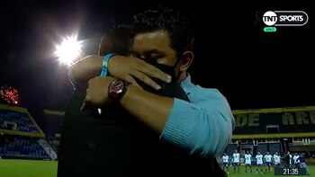 Cuando los equipos saltaron al campo de juego, Marcelo Gallardo -vestido con jean negro, remera blanca y una camperita celeste- se acercó rápidamente al Kily. El pasado jueves, el Muñeco había estado en Casa Rosada en el velatorio del campeón del mundo en México 1986. Los entrenadores, que en el pasado fueron compañeros en la selección argentina, se abrazaron y cruzaron unas sentidas palabras de consuelo mutuo. La tristeza se reflejaba en los rostros de ambos.