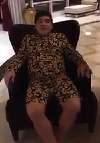 El conjunto también trajo a la memoria de algunos un atuendo que Diego Armando Maradona supo usar en el año 2016 cuando vivía en Dubai.