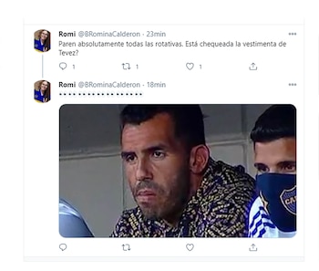 Junto a los futbolistas que quedaron fuera de la convocatoria para enfrentar al Globo, Tevez vio el partido relajado y tomando mate. Mientras quienes lo rodeaban vestían la tradicional indumentaria del club, el atacante optó por usar un conjunto de remera con capucha y pantalones cortos. Las dos prendas estaban confeccionadas con la misma tela: la misma constaba de un fondo azul y la palabra Apache repetida muchas veces en letras pequeñas y repartida por todo el género en color amarillo.