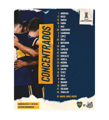 En definitiva, los once con los que Boca afrontaría la ida de las semifinales de la Copa Libertadores ante el Santos en la Bombonera son: Esteban Andrada; Leonardo Jara, Lisandro López, Carlos Izquierdoz, Frank Fabra; Eduardo Salvio, Nicolás Capaldo, Diego González, Sebastián Villa; Carlos Tevez; y Franco Soldano. Un total de 25 futbolistas se concentran con la cabeza puesta en el choque trascendental de mañana.