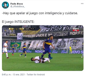 En la previa, además, sus hinchas habían saboreado la eliminación de River, que quedó en la puerta de la hazaña al ganarle 2-0 a Palmeiras tras el 0-3 que había sufrido en Avellaneda. Más allá de la mala performance en el cotejo de vuelta ante Inter de Porto Alegre, el Xeneize había mostrado buen paso en el torneo. Pero ante el club que formó a Pelé y Neymar, defeccionó rotundamente.