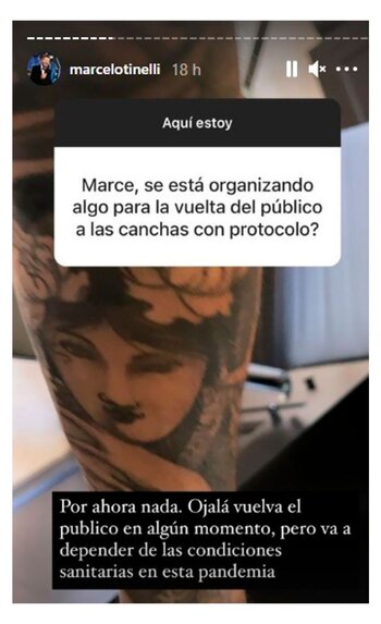 -”Marce, ¿se está organizando algo para la vuelta del público a las canchas con protocolo?”.