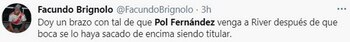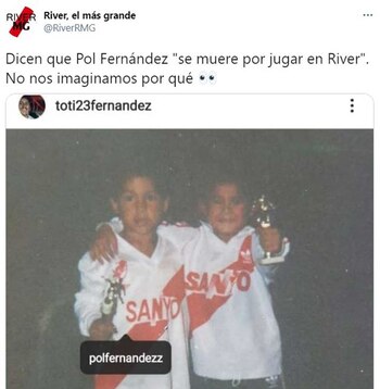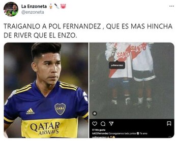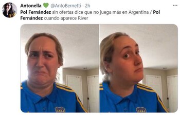 Por supuesto, este nuevo interés no hizo más que generar una catarata de memes en las redes sociales. Sobre todo por cómo les afectaría a los hinchas de Boca que Pol Fernández, de reciente paso por su club, continúe su carrera en River el rival de toda la vida.
