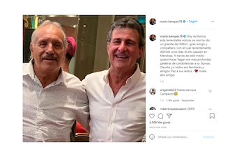 Mario Alberto Kempes publicó dos sentidos mensajes en Instagram: “Hoy recibimos esta lamentable noticia, se nos ha ido un grande del fútbol , gran amigo y compañero, con el cual recientemente disfruté unos días el año pasado en Mendoza. A través de este medio quiero hacer llegar mis más profundas palabras de condolencias a su esposa, Claudia y a todos sus familiares y amigos. Paz a sus restos . 💔 Vuela alto amigo”.