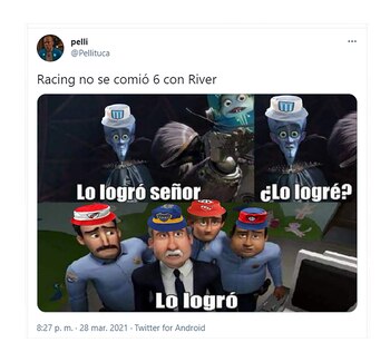 Aunque no perdió en la cancha, la Academia se convirtió en objeto de burla por la estrategia hiper-defensiva que utilizó ante el Millonario. Una vez que terminó el partido, las redes sociales se llenaron de memes en alusión al esquema que eligió el DT del elenco de Avellaneda para intentar frustrar las intenciones del Millonario en ataque.