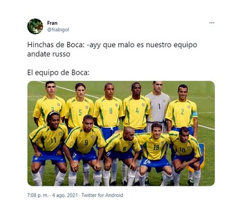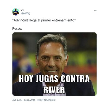 Por otro lado, hubo bromas sobre el apresurado debut de Luis Advíncula, quien llegó en los últimos días al país y fue habilitado para jugar horas antes del inicio del encuentro. Pero las principales bromas estuvieron enfocadas en la racha de Miguel Ángel Russo contra River al que eliminó en sus tres duelos directos por penales, dos con Boca y el restante con Rosario Central.