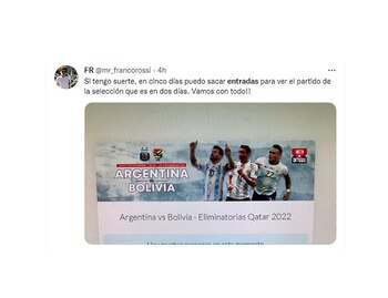En menos de tres horas, el público agotó las 17 mil entradas para ver el jueves el partido de la selección argentina contra Bolivia, por la décima fecha de las Eliminatorias Sudamericanas rumbo a Qatar 2022, en lo que marcará el regreso a las canchas tras un año y medio por la pandemia del coronavirus.
