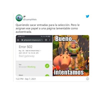 Esta situación generó una catarata de memes. Si bien algunos usuarios mostraron su descontento, otro lo tomaron con humor a sabiendas de que la escasez de entradas produciría el colapso del sistema.