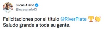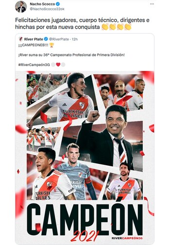 River Plate se caracteriza por dejarle un sentido de pertenencia a cada futbolista que viste la camiseta del club. A lo largo de los siete años y medio que Marcelo Gallardo dirigió al Millonario, muchos jugadores lograron pegar el salto a Europa, otros se encuentran en ligas menores y algunos simplemente se retiraron. Pero en cada oportunidad que el cuadro de Núñez logra levantar un nuevo trofeo, utilizan las redes sociales para mandarle las felicitaciones al plantel y la nueva estrella de la institución no fue al excepción.